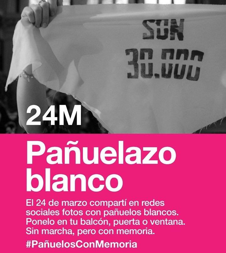 Abuelas de Plaza de Mayo, Madres de Plaza de Mayo Línea Fundadora, Familiares de Desaparecidos, Hijos y el Cels, entre otros, convocaron a un pañuelazo blanco, una iniciativa que a través de las redes sociales repudiará el golpe de una forma novedosa ante el aislamiento social, preventivo y obligatorio decretado por el gobierno nacional para contener la propagación del coronavirus.