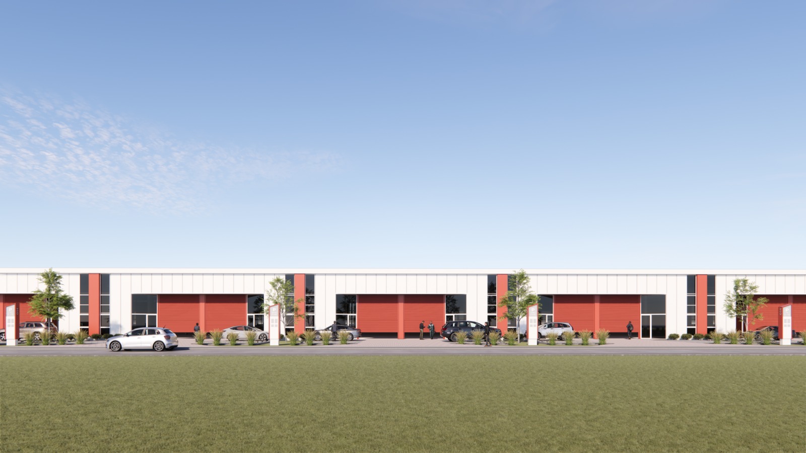 Área PyME W contempla la edificación de 56 naves industriales bajo el formato “llave en mano”, distribuidas en una superficie total de más de 21 mil m². Cada unidad, desarrollada en planta baja, cuenta con alturas interiores de entre 6,45 y 8,15 metros, además de áreas descubiertas de uso exclusivo.