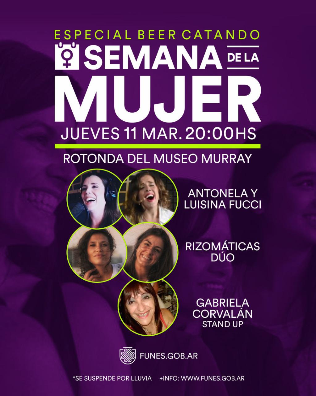 Cata de cerveza, música y humor el jueves en la rotonda del museo Murray por artistas mujeres. El evento se realiza en el marco de la Semana de la Mujer.
