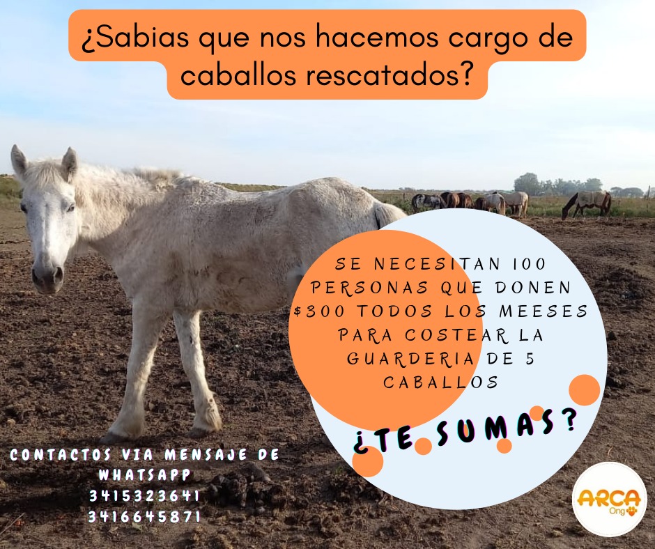 Aranza remarca que “el objetivo de recaudar fondos es que cada vez más personas nos sumemos a colaborar desde 300$ con un aporte solidario, o con lo que más pueda uno aportar a la causa, conociendo toda la historia, para todos los meses poder cubrir las guarderías de estos animales rescatados que son judicializados o secuestrados por casos de maltrato animal y que quedan en nuestra ciudad”. Agrega también que “Una vez que pasan el procedimiento de la fiscalía, con sus papeles y demás, el depósito judicial en general queda en Arca, quien se tiene que hacer cargo porque no tenemos un lugar municipal donde alvergar equinos”.