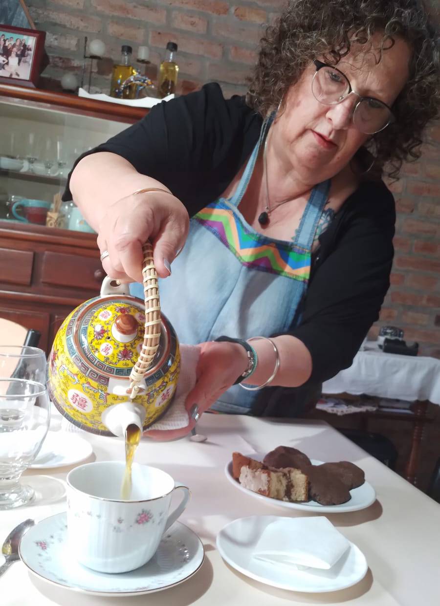 Reuniones de amigas, cumpleaños y demás eventos fueron parte de las degustaciones a las que asistió Graciela con sus tazas, teteras y latas de blends, las cuales también tiene a la venta.