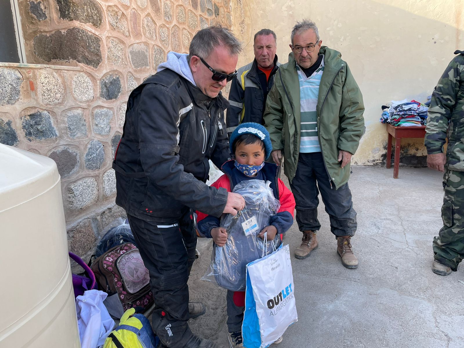 “Llevamos un camión semi remolque lleno de donaciones, y la gente de Funes aportó mucho”, dice Pablo. Al llegar a El Durazno, alquilaron mulas que subieron a paso firme los guardapolvos, las mochilas, las zapatillas y demás donaciones en alforjas colgadas de su lomo.