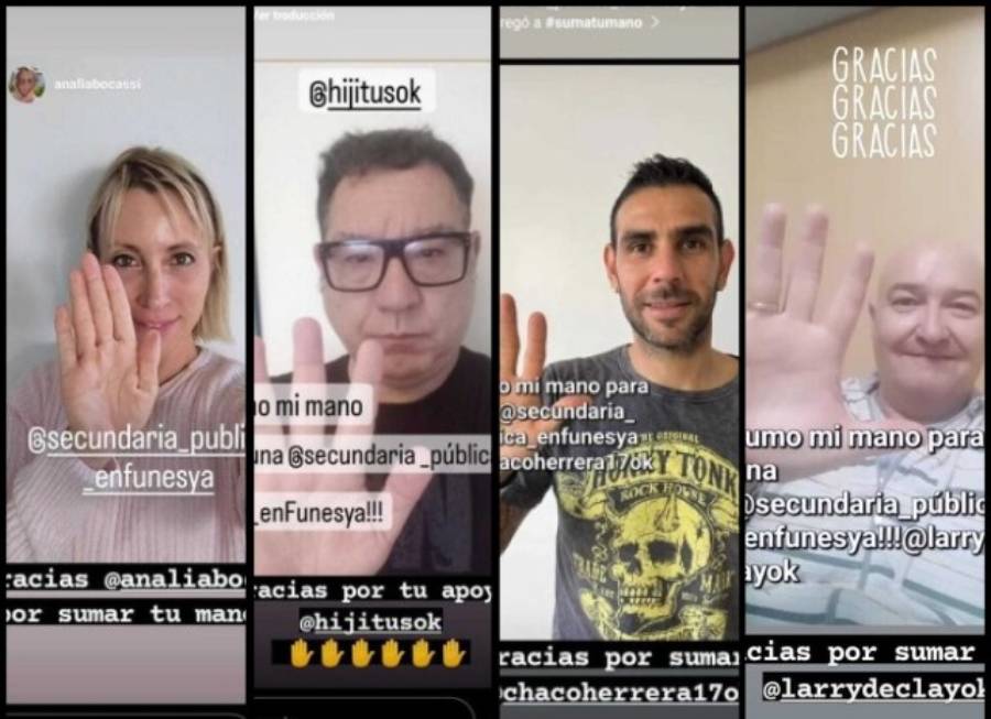 Lo concreto es que aún se necesitan los fondos y voluntades políticas para, por lo menos, edificar las dos escuelas secundarias previstas en la ciudad, una de ellas con orientación técnica. Por eso, para que el tema no quede en el olvido, Familias Unidas lanzó una campaña que consta en “Sumar tu mano por la educación pública”, a la cual se adhirieron en tan sólo unos días artistas de la zona y el país, periodistas de Funes y Rosario y también jugadores de Newell’s Old Boys y Rosario Central, además de vecinos y vecinas de la ciudad, como se puede ver en las imágenes.