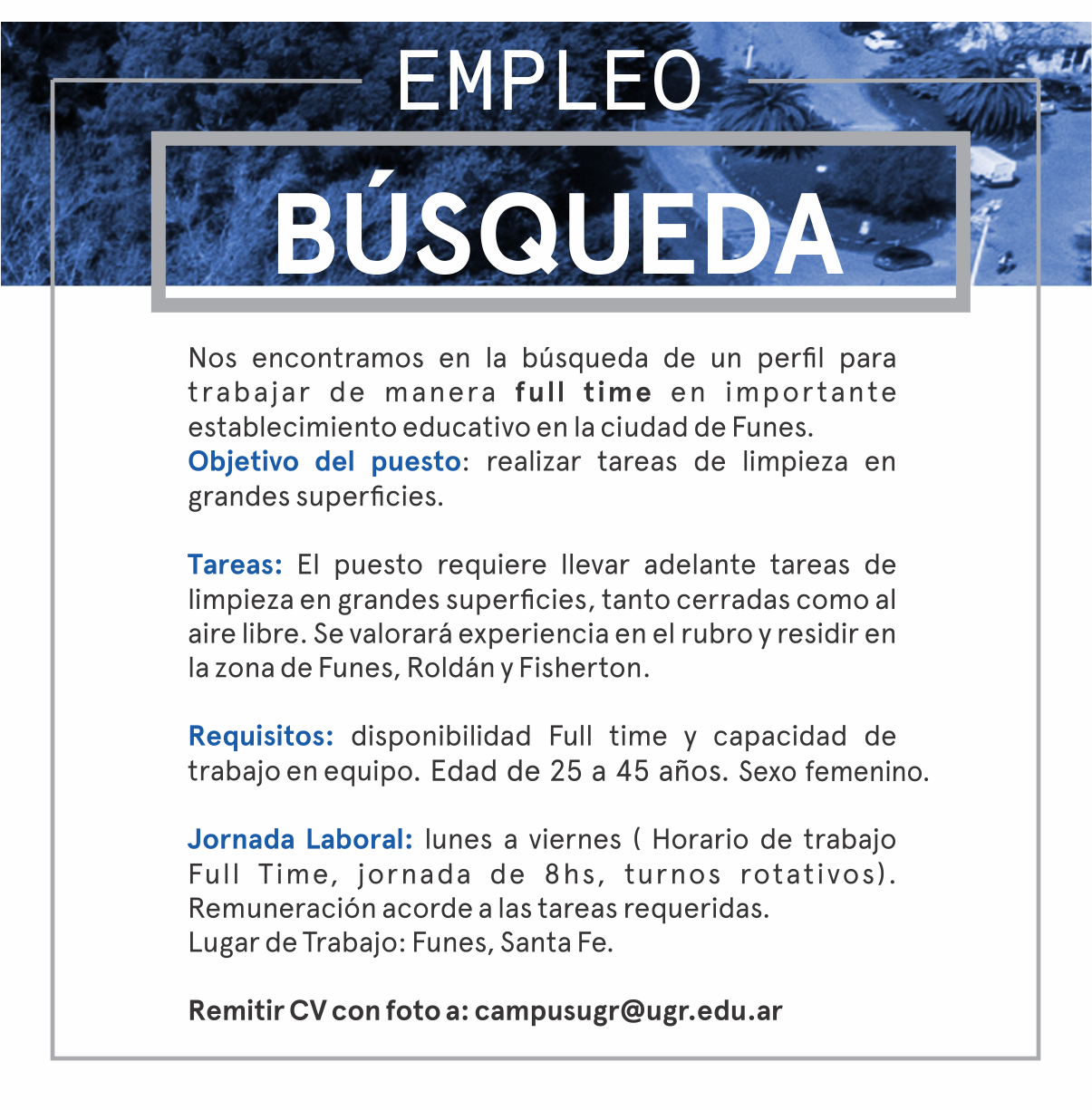 Importante establecimiento educativo de Funes busca personal para limpieza de grandes superficies. Toda la info en la nota.