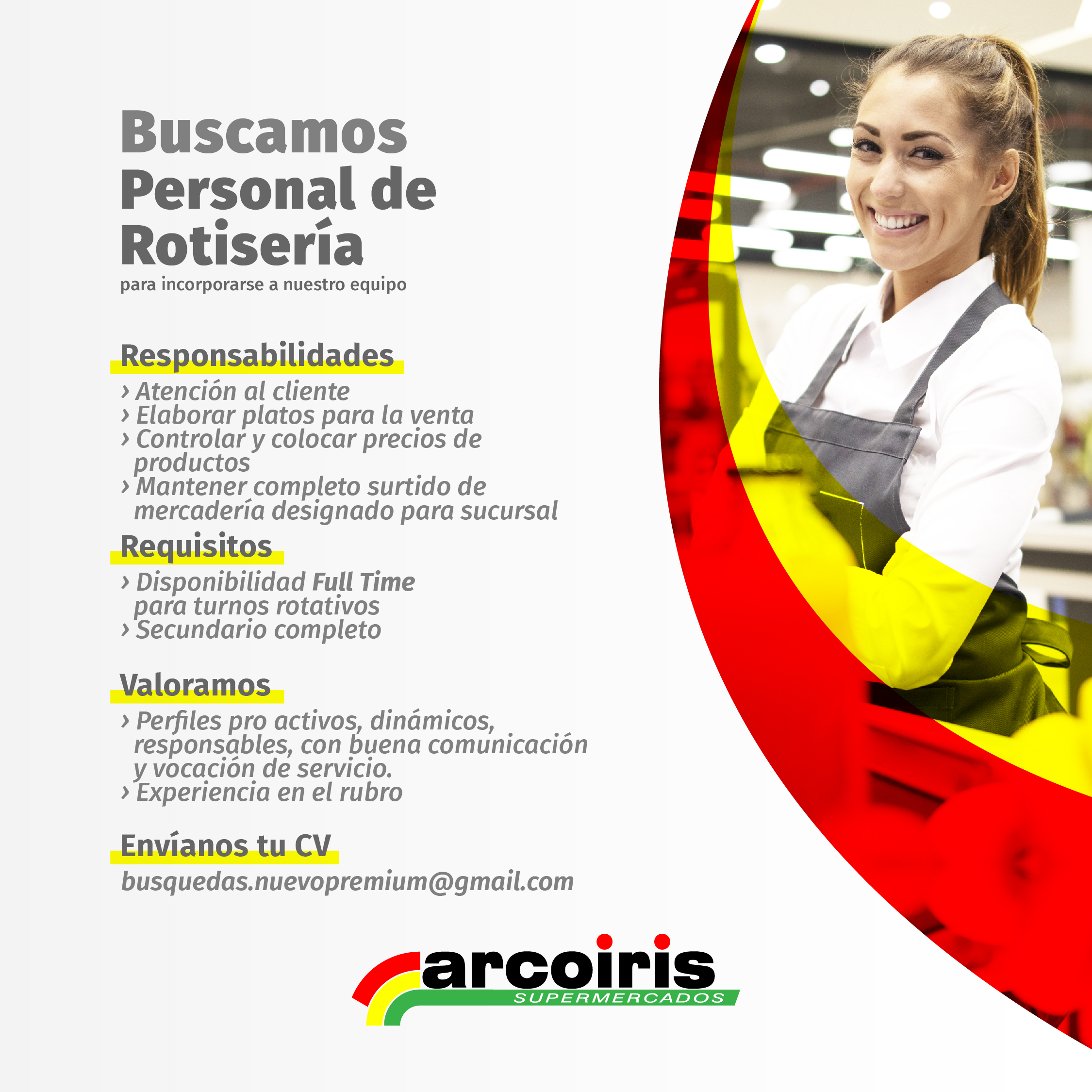 Rotisero: Atención #Funes y #Fisherton: Buscamos Roticer@s para nuestras sucursales! Si te interesa, escribinos al correo busquedas.nuevopremium@gmail.