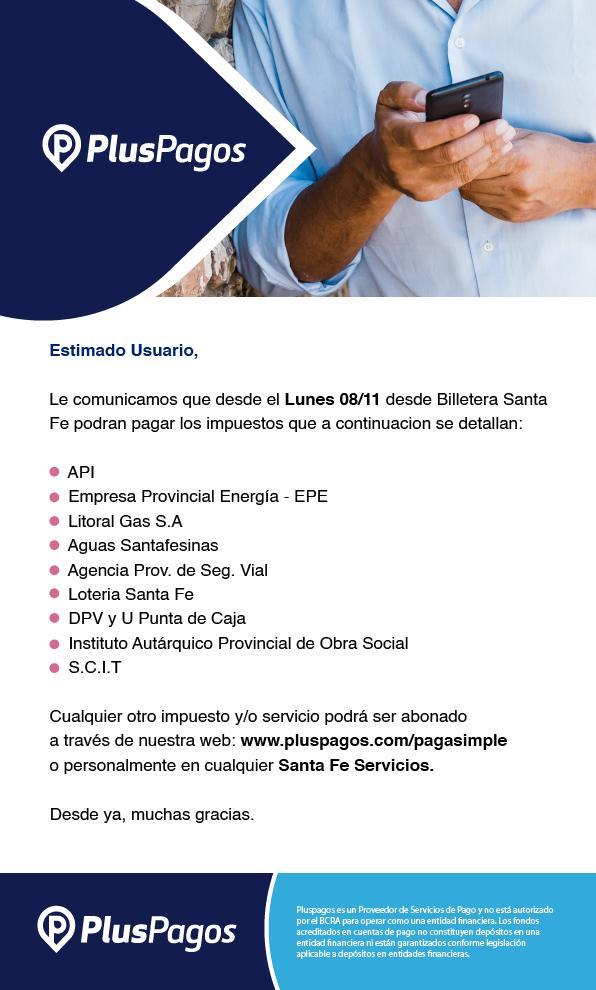 Billetera Santa Fe suma servicios e impuestos provinciales