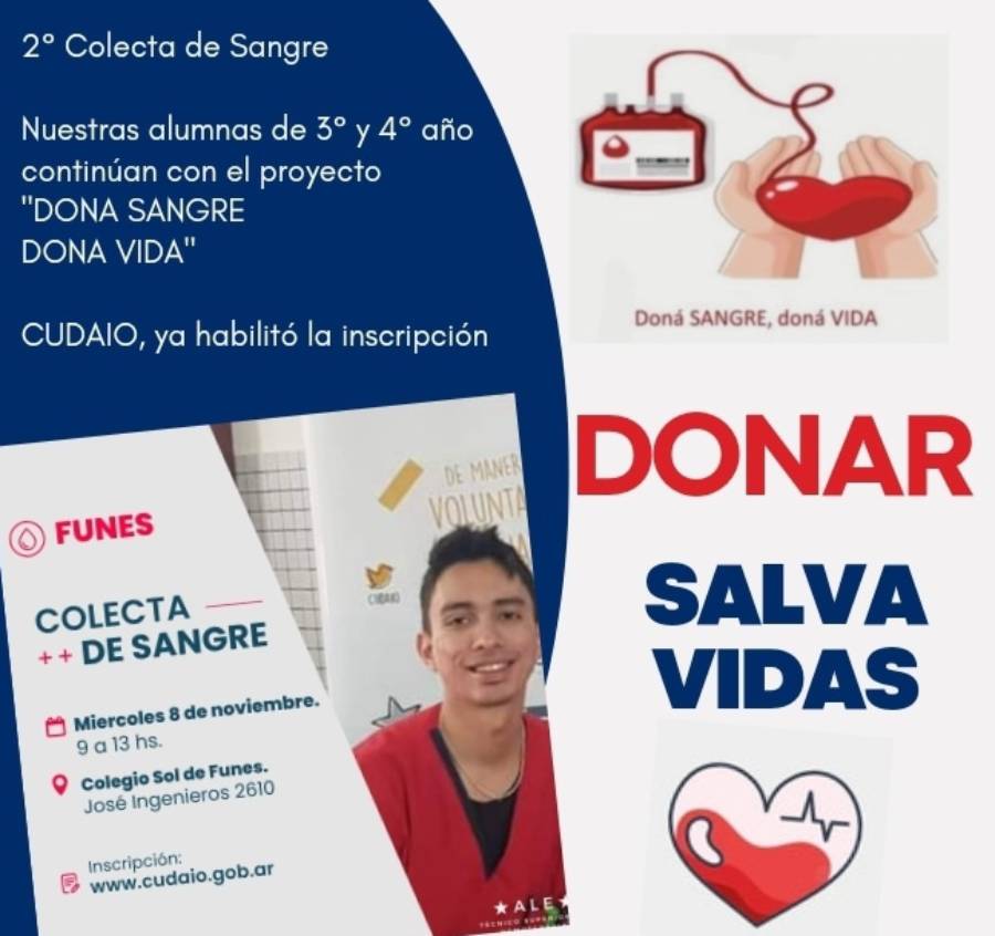 El miércoles 8 el Colegio del Sol de Funes será sede de una nueva campaña por la donación de sangre. Alumnas de 3 y 4 años frente al proyecto "Dona sangre - Dona vida" invitan a la comunidad a ser parte de la misma.