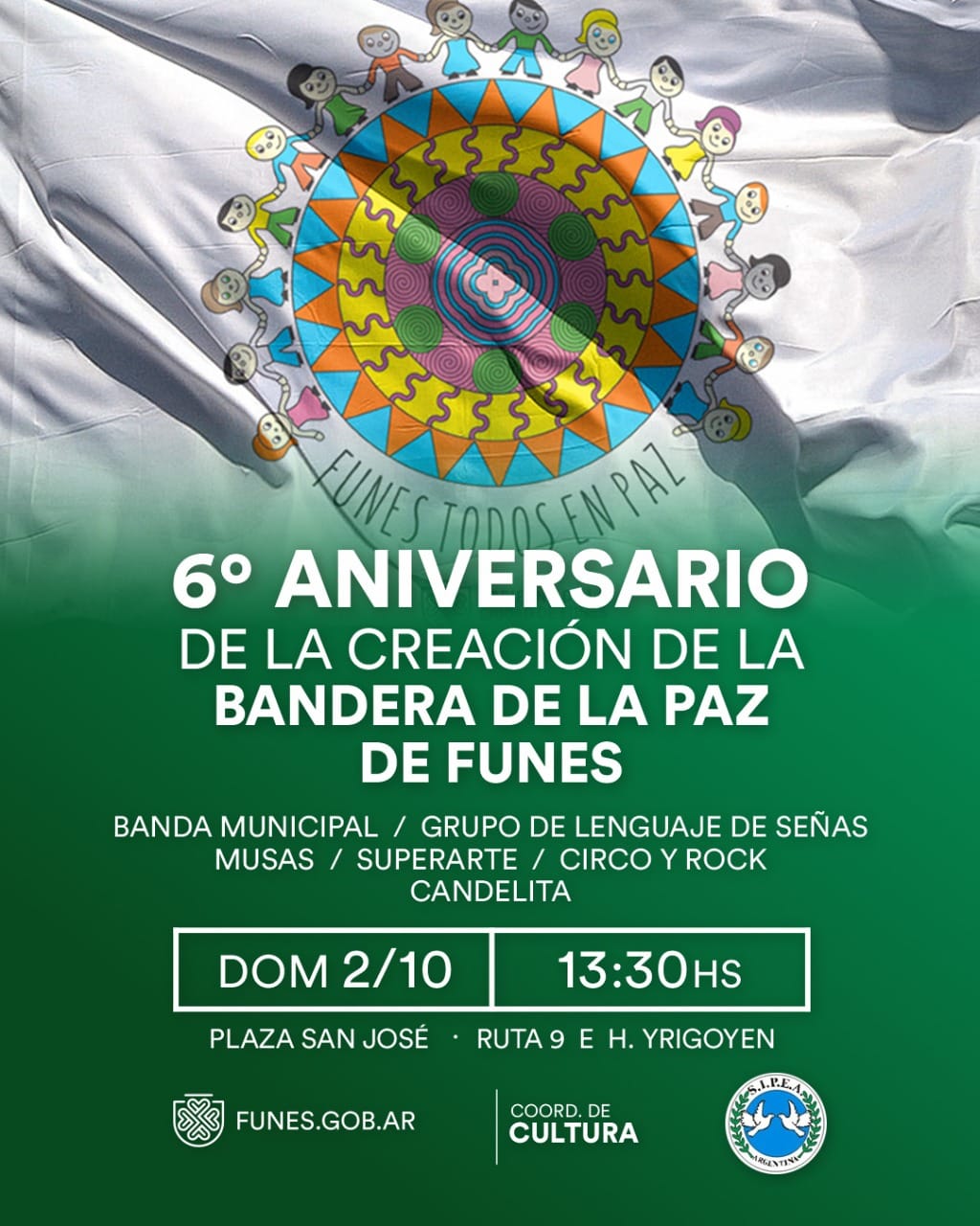 La misma surge de un proyecto presentado en el concejo municipal, por la profesora Haydée Norma Podestá, Directora de SIPEA infanto Juvenil Santa Fe y la escritora funense Gricelda Goñi. En el año 2016, el Concejo Municipal presentó el Proyecto mediante la declaración Nº 194/16 del Concejo Municipal declarando de interés Municipal la Actividad “Una Bandera de Paz para Funes”, promovida por SIPEA Infanto Juvenil de Santa Fe.