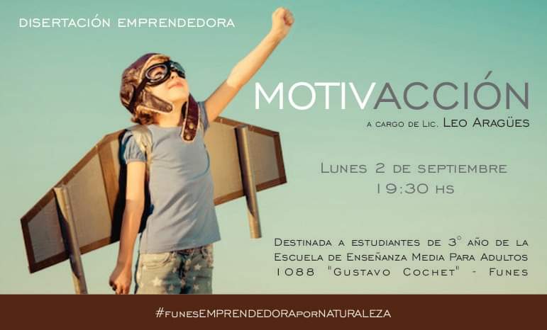 Se realizará el 2 de septiembre a las 19.30 en la Escuela de Enseñanza Media Para Adultos 1088 Gustavo Cochet, una disertación emprendedora destinada a los alumnos de tercer año de la institución. La misma estará a cargo de Leo Aragües, emprendedor funense.