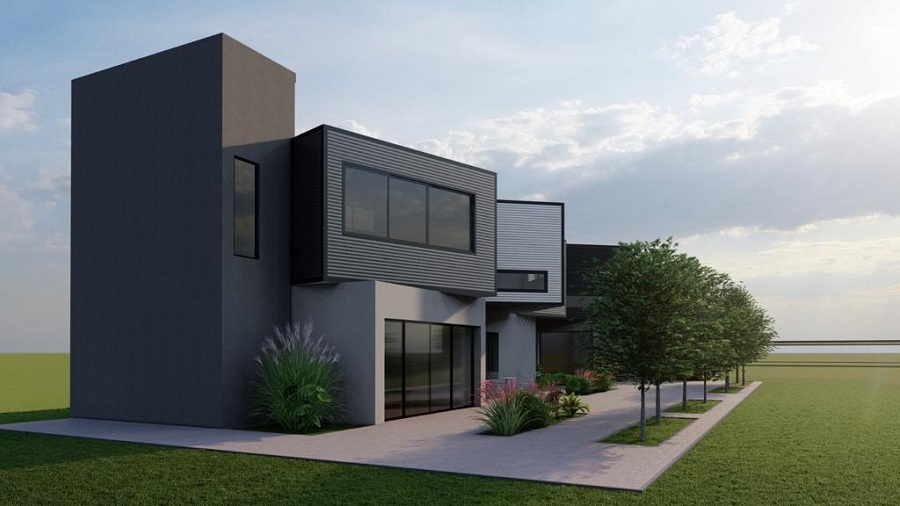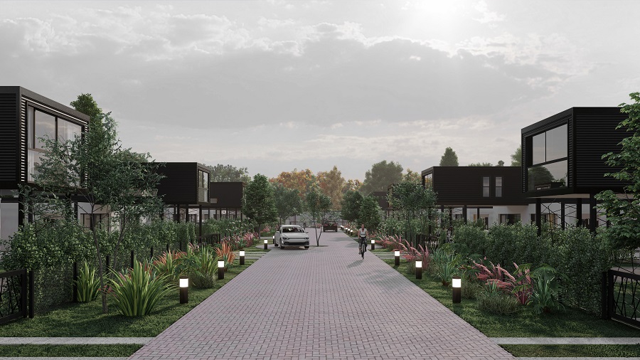 “Las viviendas están diseñadas en dos plantas, con la planta baja destinada a espacios como el living, comedor, cocina, escritorio en algunos casos, estar y baño. En la planta alta se encuentran dos dormitorios y dos baños. El diseño de los condominios se destaca por su estructura mixta, con mampostería en la planta baja y una estructura metálica forrada en chapa negra en la planta alta”, detalló el arquitecto.
