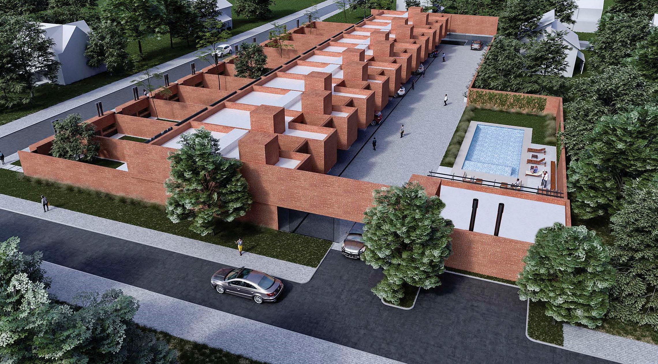 El condominio tendrá doble ingreso privado por De La Torre y Alem, con una calle interna exclusiva para el acceso de los vehículos. "Esta calle además le va a dar seguridad a las familias y a sus hijas e hijos", explica Jobell. Allí también se construirán los espacios comunes: una pileta y un quincho. Además, cada una de las 12 viviendas tendrá acceso individual por calle San José.