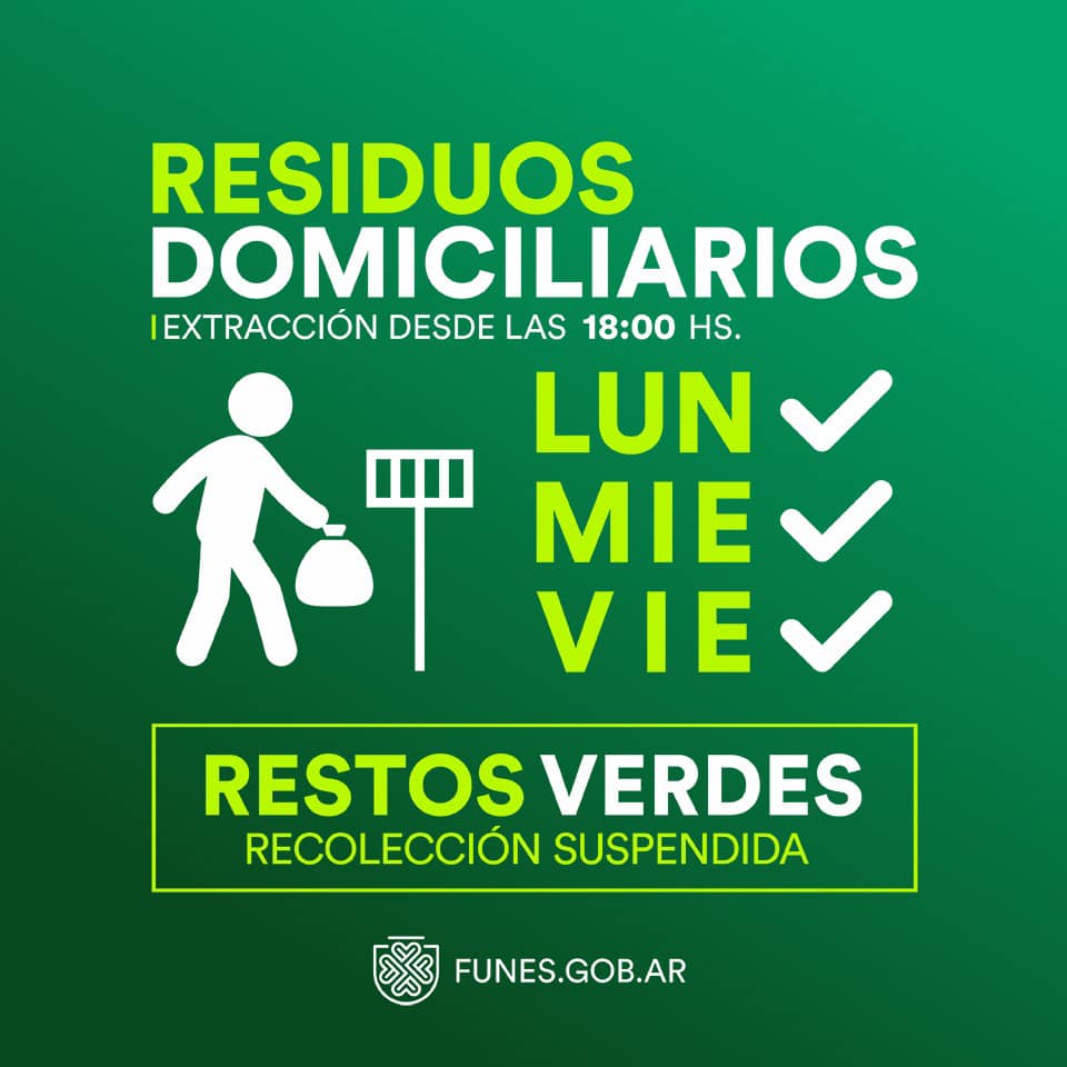 Según se explicó, momentáneamente, la recolección de restos verdes se encuentra suspendida. Así como la recolección de domiciliarios tendrán un cronograma distintos al habitual: