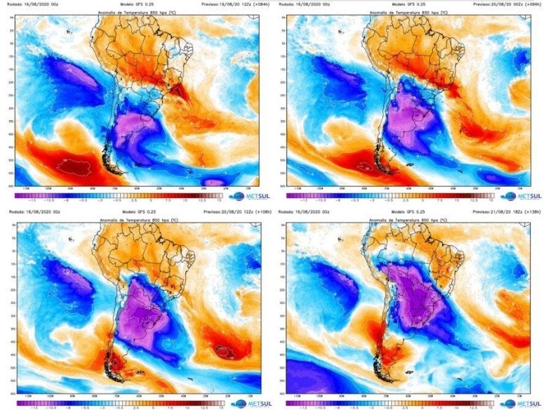 El alerta emitida por la empresa brasileña sostiene que el “aire antártico” avanzará por Argentina y alcanzará parte de Brasil, además de Paraguay, Bolivia, Uruguay, Perú e incluso Ecuador, Colombia y Venezuela.