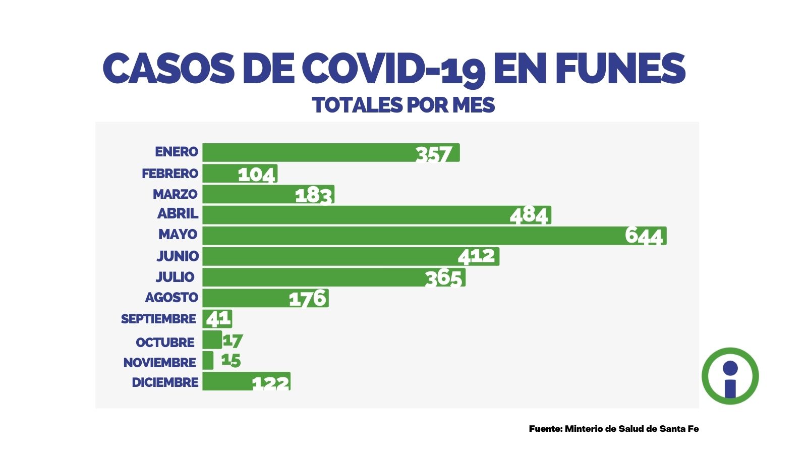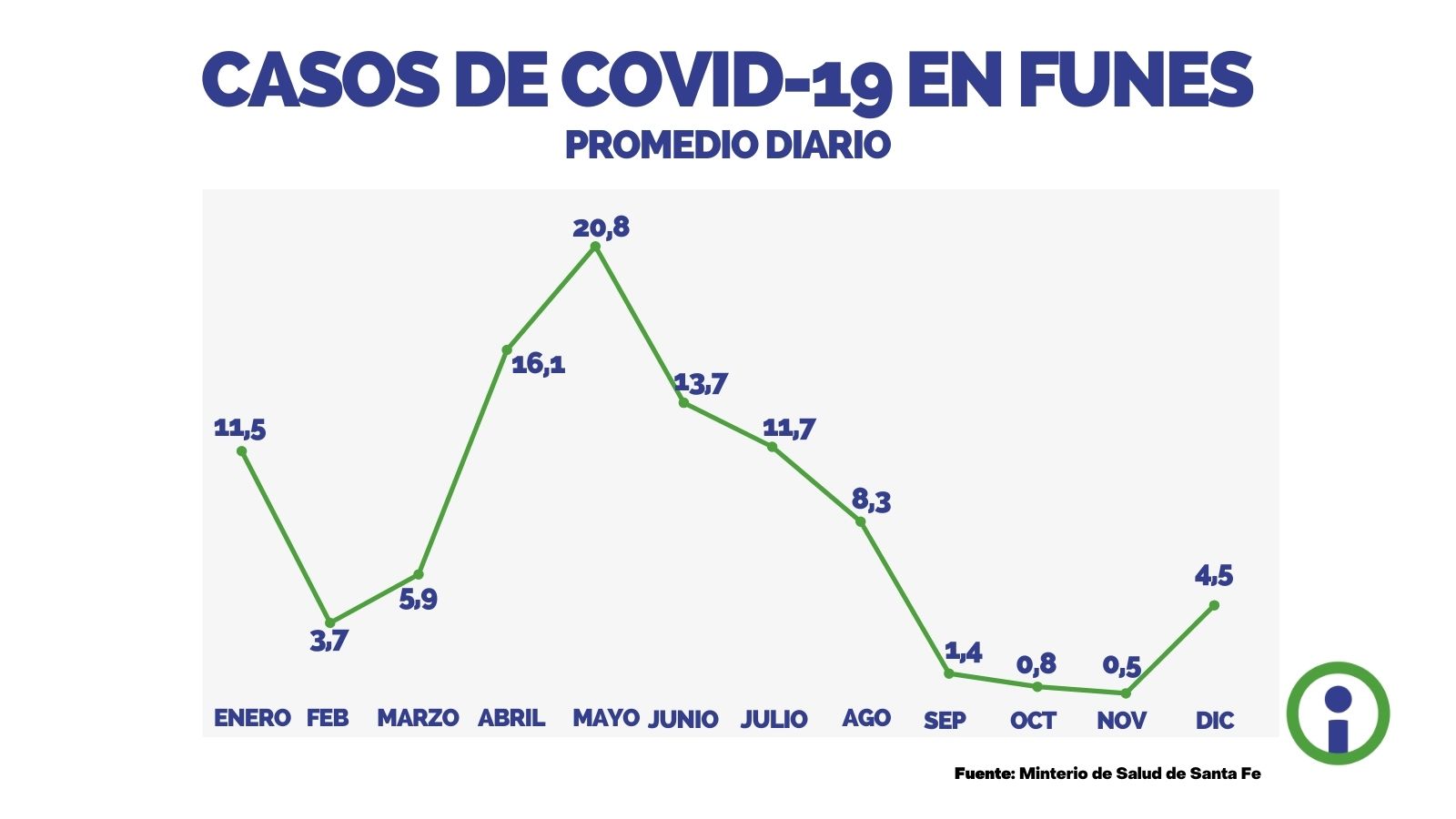 Este lunes Funes registró 20 nuevos casos confirmados de Covid-19 y ya sumó en lo que va de diciembre 122 contagios. El número, si bien se mantiene lejos de las cifras del pico de la segunda ola, sí muestra un abrupto crecimiento respecto al mes pasado, cuando apenas se informaron 15 positivos.