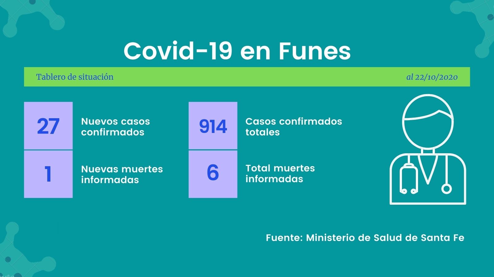 En tanto, la provincia confirmó 27 nuevos casos positivos de coronavirus en la ciudad, que está muy cerca de alcanzar el millar de contagios. Son 914 los casos confirmados en Funes desde el inicio de la pandemia.
