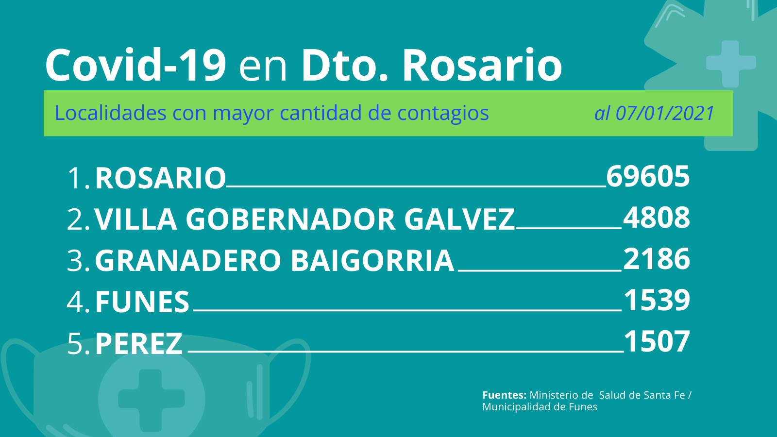 Funes ya es la cuarta ciudad del Gran Rosario con mayor cantidad de casos confirmados de Covid-19 acumulados desde el inicio de la pandemia.