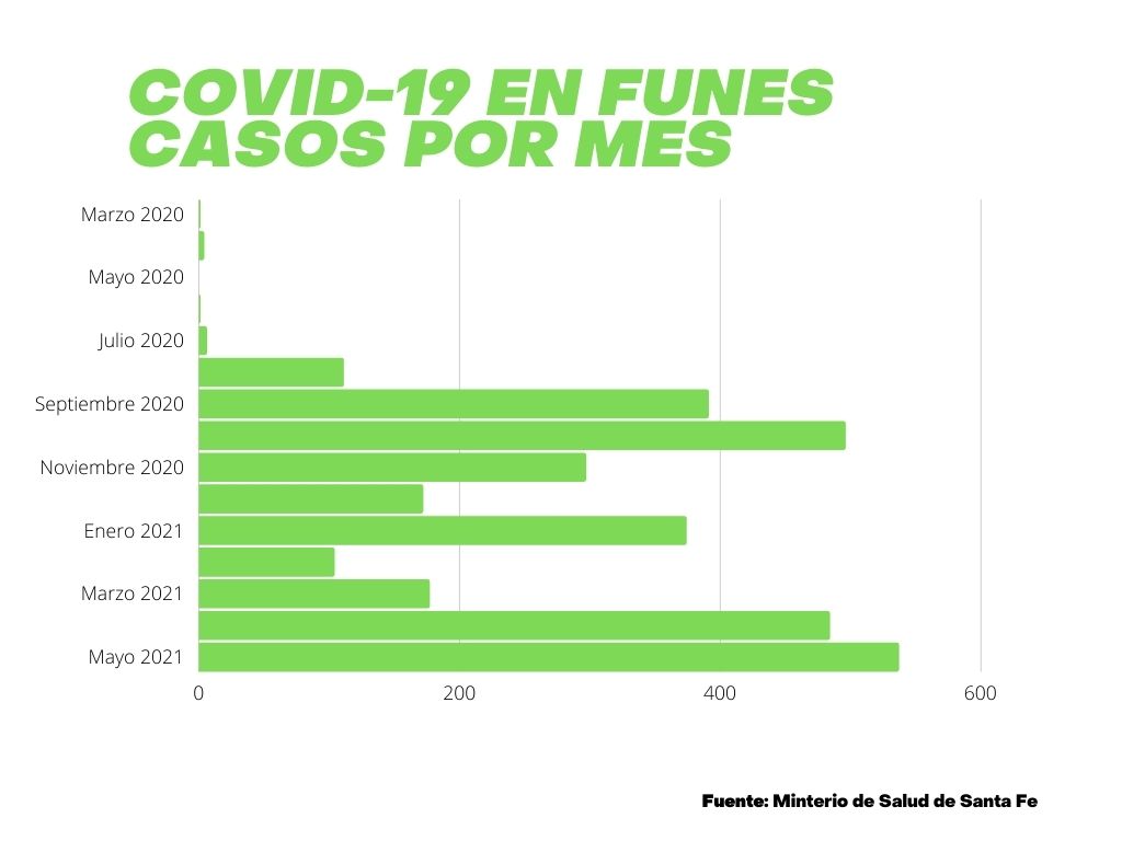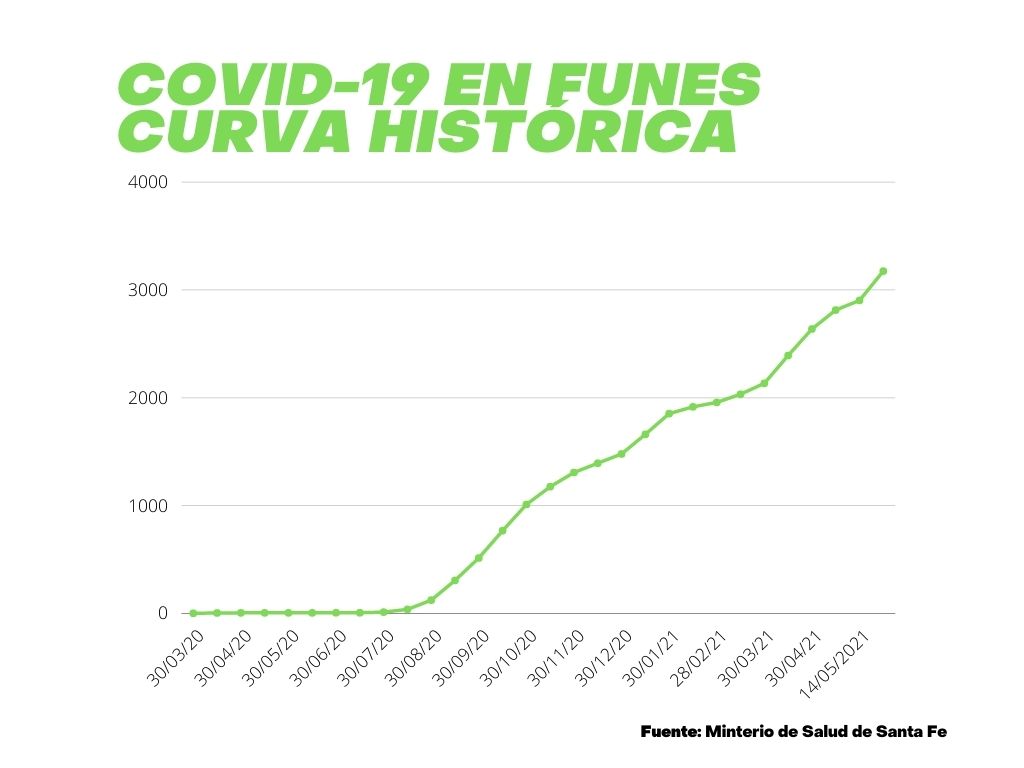 Desde el ya lejano 30 de marzo de 2020 cuando se reportó el primer contagio oficial de Covid-19 en la ciudad, En Funes ya se registraron 3175 casos confirmados. Merced al aislamiento estricto de los primeros meses, la ciudad tuvo un índice de contagios muy bajo hasta agosto, cuando la mayoría de las actividades habían sido reabiertas.