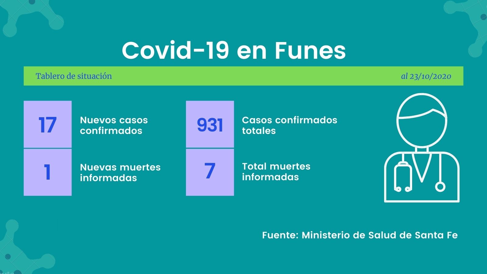 Además, se confirmaron otros 17 casos positivos de Covid-19. De esta manera, Funes llega a 931 contagios totales desde que comenzó la pandemia.
