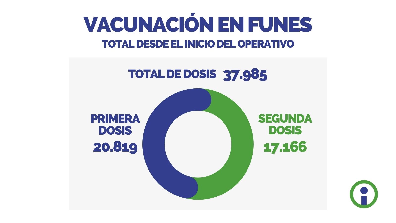 En total, en el vacunatorio de Funes ya se colocaron 37.985 vacunas. De esa cifra, 20.819 son primeras dosis y 17.166, segundas. Es decir, más de 17 mil funenses ya completaron su esquema de inmunización contra el coronavirus.