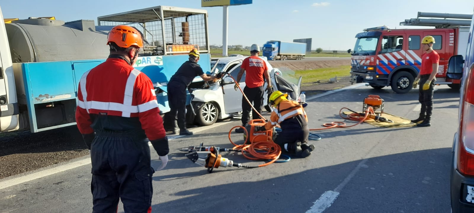 Según información desde el Área de Protección Civil, que trabajó en el lugar junto a Bomberos de la ciudad de Funes, el conductor se encontraba inconsciente, pero se logró estabilizarlo, aunque presentó una fractura en su miembro inferior y laceraciones en la cara por la explosión del vidrio. En tanto, su acompañante también sufrió laceraciones, mientras que los dos ocupantes del vehículo delantero presentaron lesiones leves, por lo que fueron trasladados por el SIES a Rosario.