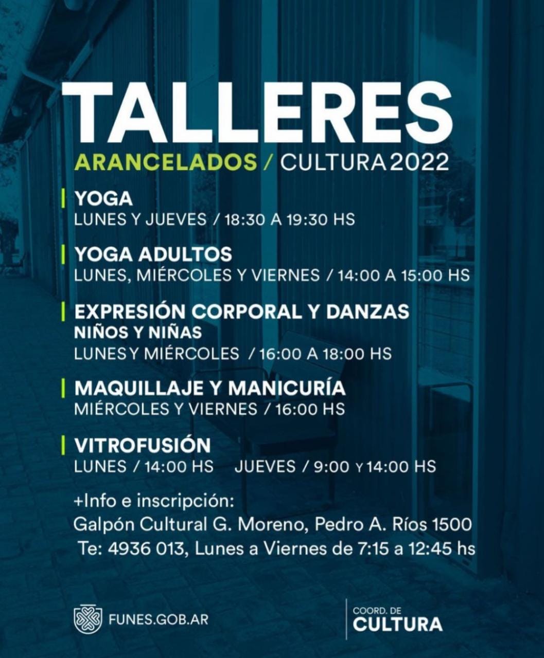 La Coordinación de Cultura lanzó 5 nuevos talleres arancelados para los ciudadanos de Funes. Se realizarán durante toda la semana en diferentes horarios para la comodidad de los alumnos y las listas para inscribirse ya están disponibles.