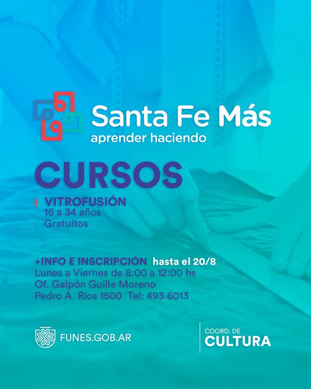 En el marco del programa "Santa Fe Más" en conjunto con la cooridnación de Cultura de la municipalidad un nuevo curso llega a la ciudad, se trata de un curso gratuitos de vitrofusión para personas entre 16 y 34 años. Las inscipciones se realizarán unicamente hasta 20 de agosto.
