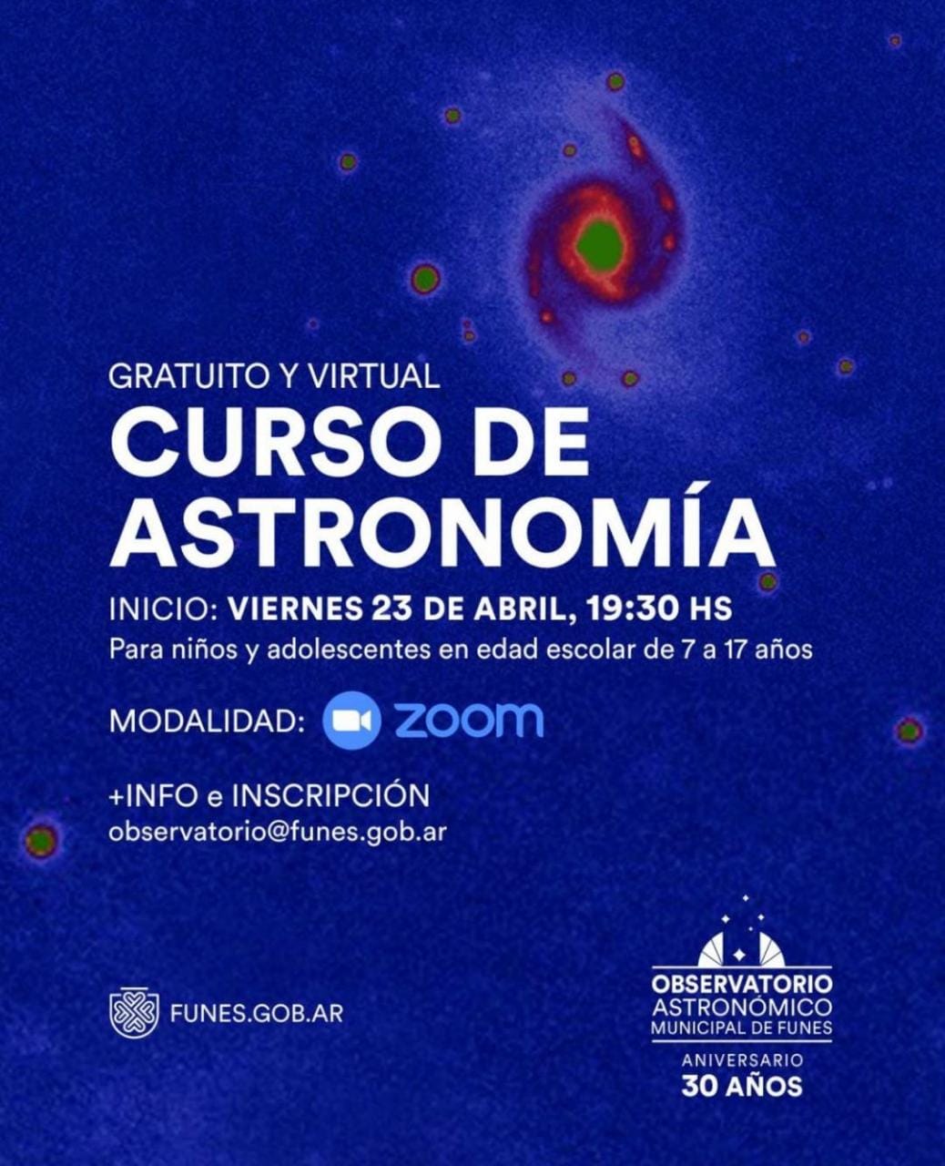 El Observatorio Astronómico Municipal abrió las inscripciones para un curso gratuito y virtual sobre astronomía, dirigido para chicos y chicas de 7 a 17 años de edad, iniciará el viernes 23 a las 19.30.