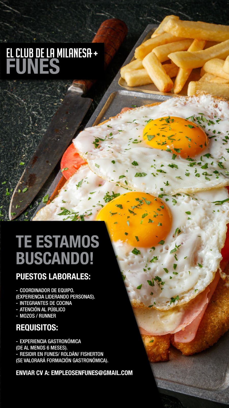 EL CLUB DE LA MILANESA ESTÁ LLEGANDO A FUNES. SI QUERES FORMAR PARTE DE NUESTRO EQUIPO, ENVIANOS TU CV A: empleosenfunes@gmail.com
