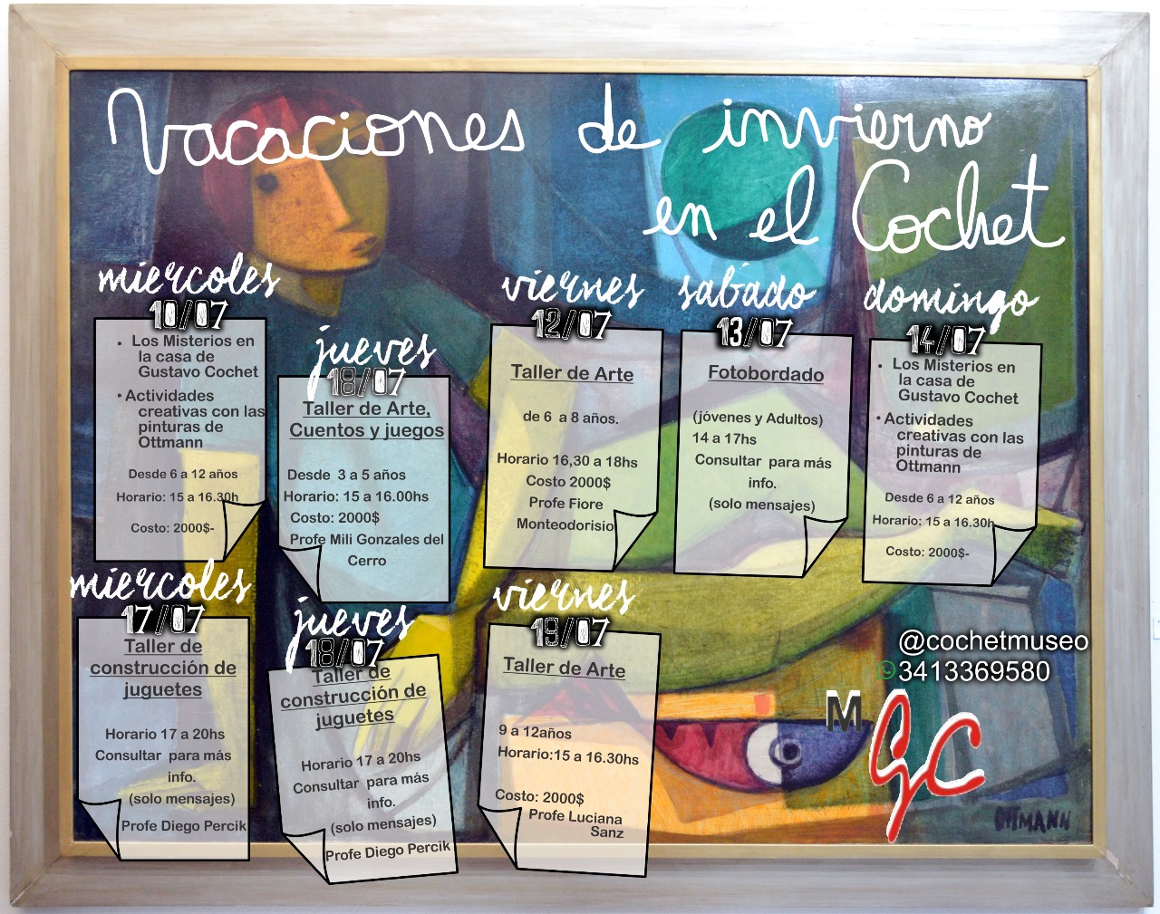 Este miércoles (se repite el domingo 14) comenzará la actividad con una visita organizada para chicos desde 6 a 12 años, de 15 a 16.30, se trata de “Los misterios de la casa de Gustavo Cochet", la cual consiste en entrar a la parte del atelier del artista en búsqueda de conocer “no solo sus pinturas y grabados sino... ¡los misterios escondidos!”, según compartieron sus organizadores. Tras ese recorrido, las y los visitantes podrán recorrer la muestra del pintor de estilo geométrico Hugo Ottmann y, a partir de sus obras, realizar una serie de juegos y actividades plásticas. También habrá cuentos para el cierre de la tarde.