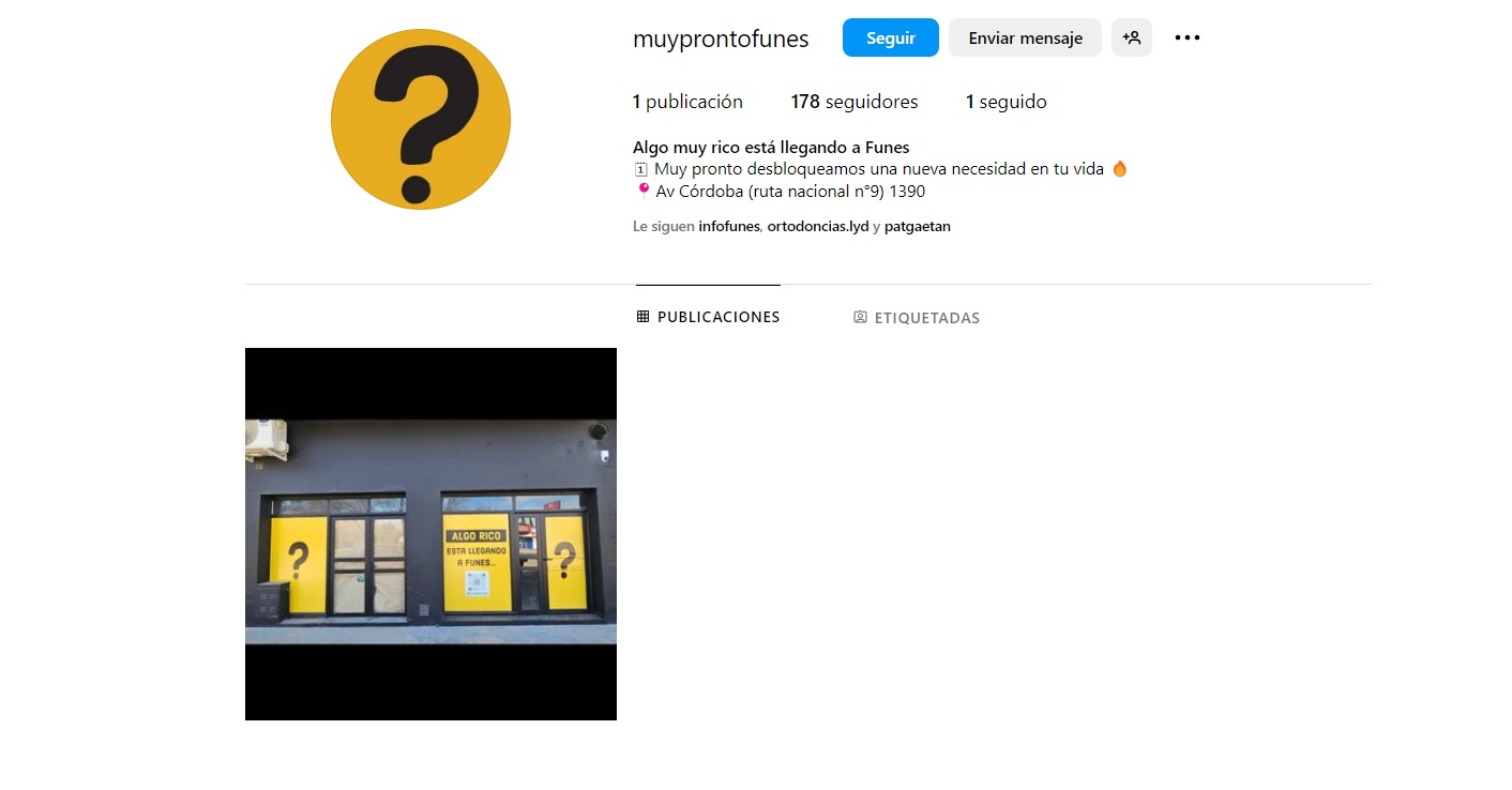 En los últimos días, un intrigante misterio vio la luz en Instagram gracias a una cuenta que responde al nombre de "Muyprontofunes". Este enigma virtual logró captar la atención de numerosos usuarios funenses, quienes se ven atraídos por un mensaje críptico que anuncia la llegada de un nuevo local en Ruta 9. Sin embargo, lo que realmente llamó la atención es el hecho de que los titulares detrás de esta cuenta se niegan, por el momento, a revelar el nombre real del establecimiento que está por desembarcar en la ciudad. En su lugar, proponen un juego y afirman que quienes descubran cuál es la marca, serán premiados.
