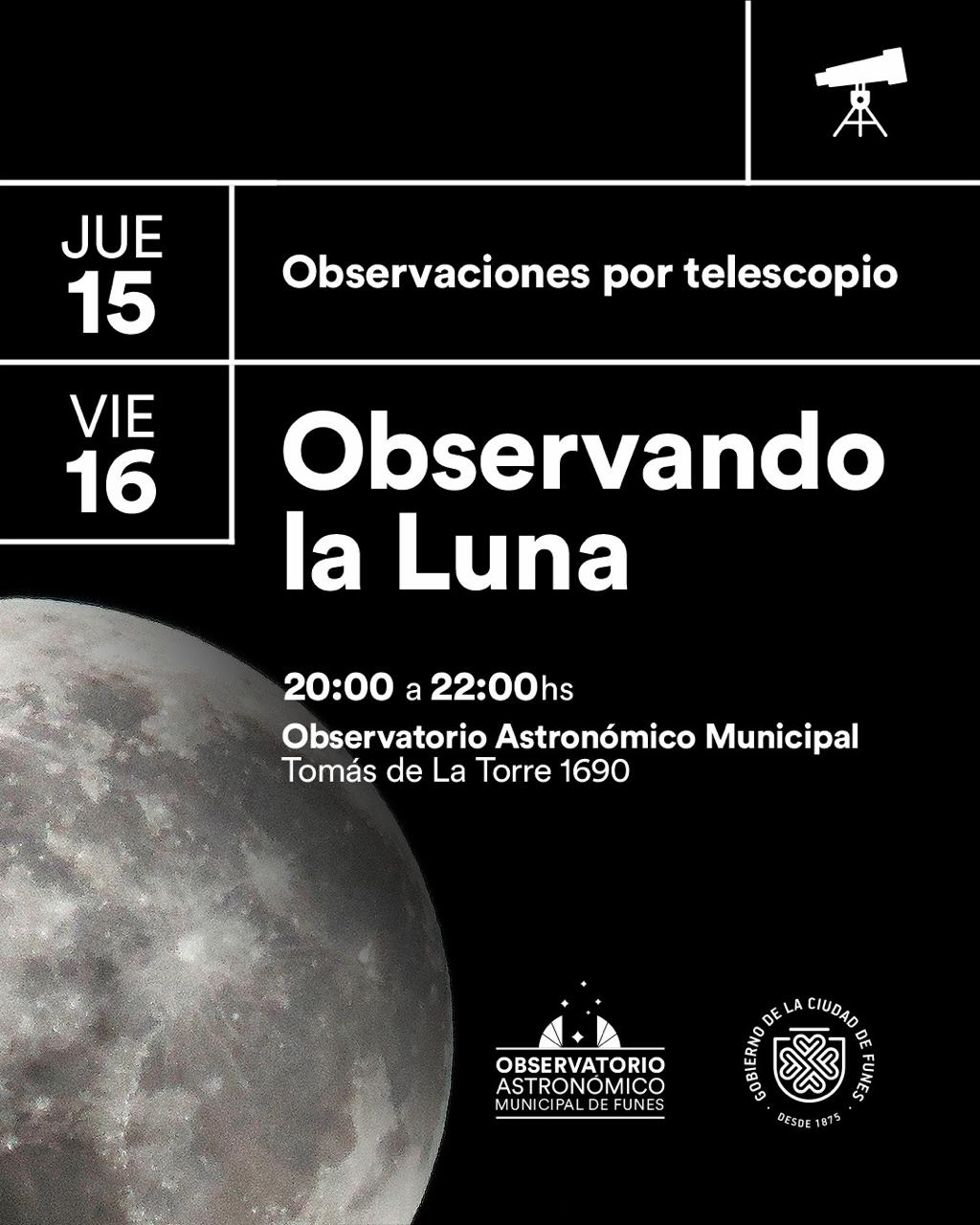 En tanto, los días jueves 15 y viernes 16, en el mismo horario, la actividad invita a participar de la observación del satélite natural, que se encontrará en su segundo periodo lunar del año y se podrá explorar cada detalle de su relieve.