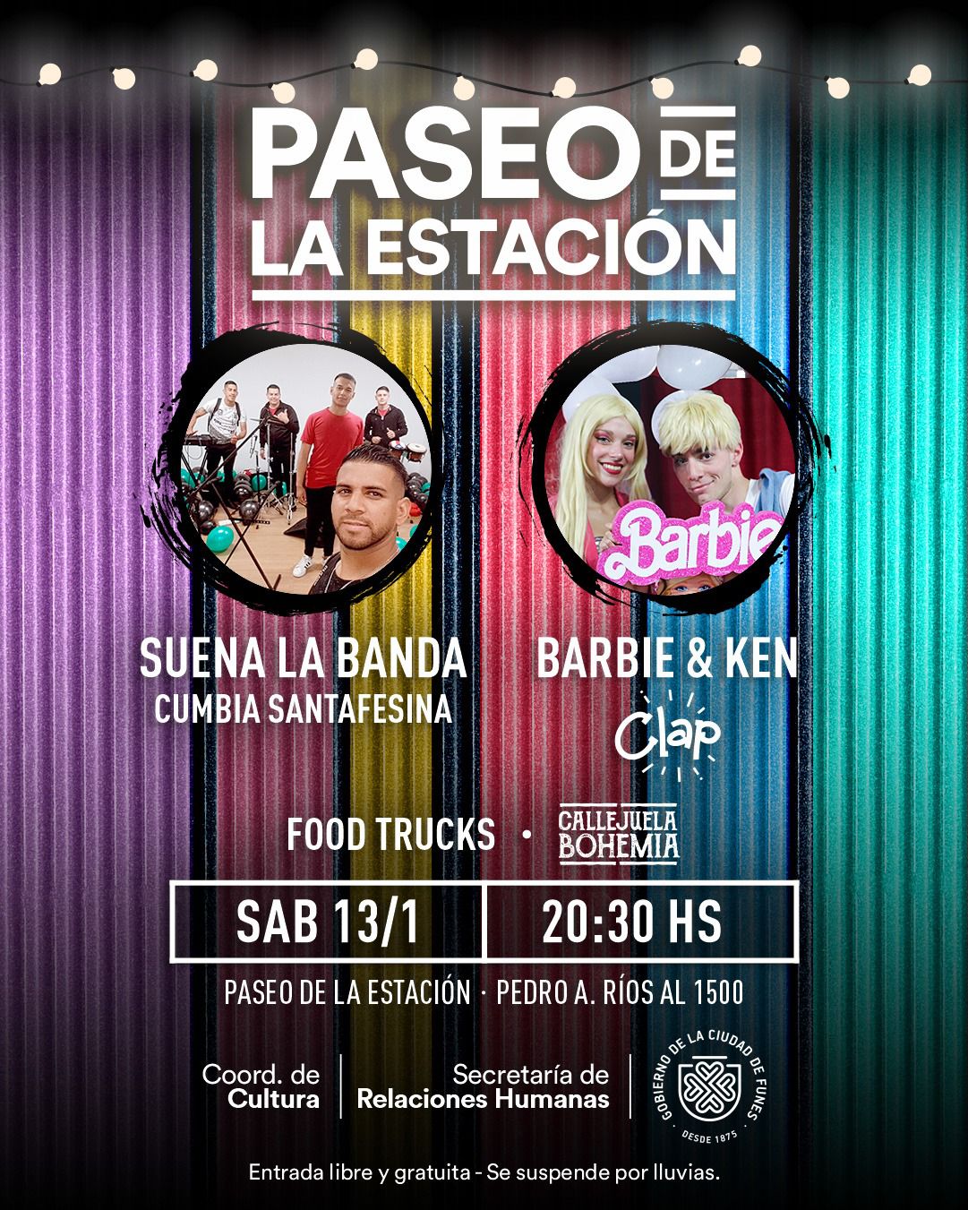 El sábado a las 20.30hs , la jornada comenzará con un espectáculo infantil de "Barbie & Ken" seguido de la música en vivo de “Suena La Banda”, quienes animarán la velada con ritmos de cumbia santafesina.