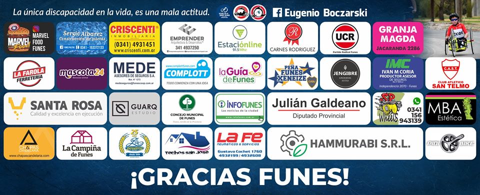 La carrera será el 1 de febrero y consta de dos categorías, una integrativa de 4km y una competitiva de 8km. Los inscriptos, de todas partes del país, participarán en tandem, handcicle, triciclo o bicicleta. La bici que utiliza Euge para representar a Funes en la compettencia es la handcicle (impulsada con sus manos).