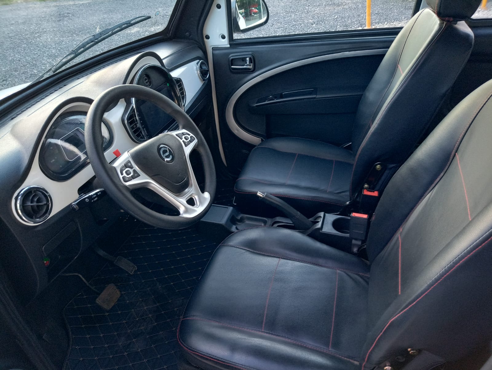 El Tito color blanco que asombra a todo el que pasa por el local cuenta con un equipamiento básico pero que incluye aire acondicionado, levantavidrios eléctricos y una pantalla táctil de 10” que no tiene nada que envidiarle al resto".