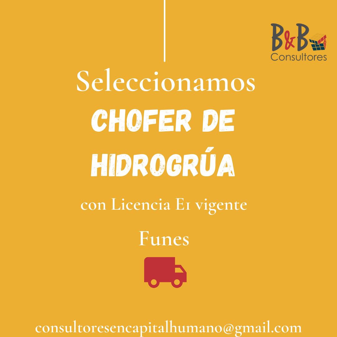 La empresa B&B Consultores de la ciudad de Funes se encuentra en la búsqueda de un nuevo empleado para cubrir el puesto de chofer de hidrogrúa, requisito excluyente que tenga la licencia vigente.