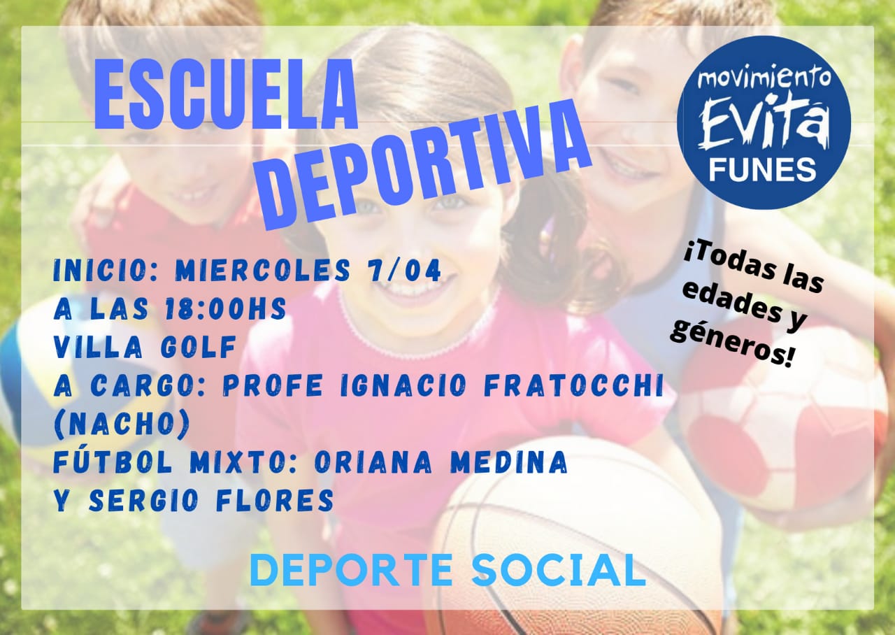 El movimiento Evita Funes organizó para este miércoles 7 de abril a las 18 en calle Urquiza y Figuera, barrio Villa Golf, una jornada para chicos y chicas con el objetivo de construir un espacio deportivo.