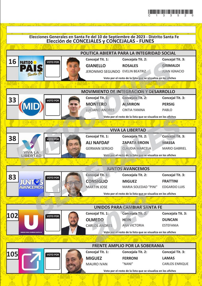 En tanto, también se votará para definir quién será el senador que representará al departamento Rosario, cargo para el cual hay cuatro postulantes: Lisandro Cavatorta (Juntos Avancemos), Ciro Seisas (Unidos), Gabriela Meglio (Frente de Izquierda) y Antonella Oliveto ( Coalición Cívica-ARI).
