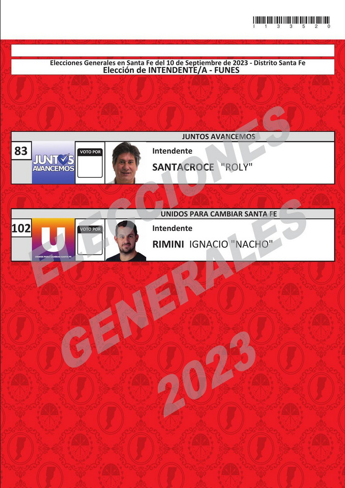 Con respecto al primer poder mencionado, en Funes habrá sólo dos postulantes a la intendencia para el período 2023-2027: el intendente Roly Santacroce, que sacó más de 13 mil votos en las Paso y va por la reelección; y el candidato de Unidos para Cambiar Santa Fe, Juan Ignacio Rímini.