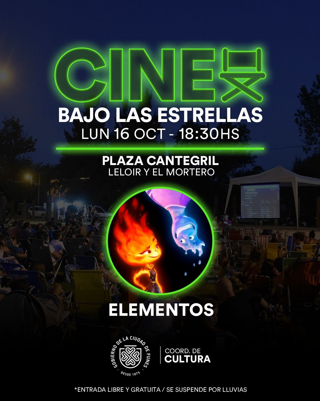 El próximo lunes (feriado) habrá cine en la plaza Cantegril de Funes. Desde las 18.30 se podrá disfrutar gratuitamente del film Elementos en el espacio verde ubicado en Leloir y El Mortero.