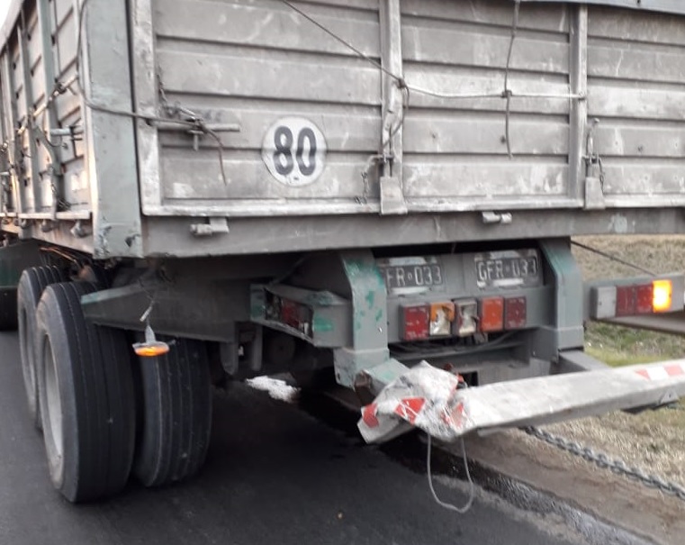Los camiones que colisionaron fueron un VW modelo 18310 con acoplado cargado con maíz y conducido por un hombre de 59 años oriundo de la localidad de Leones, Córdoba. Este chocó en la parte trasera del camión Iveco 170 E25 con acoplado cargado con materiales de construcción, conducido por un hombre de 25 años oriundo de la localidad de Olavarría.
