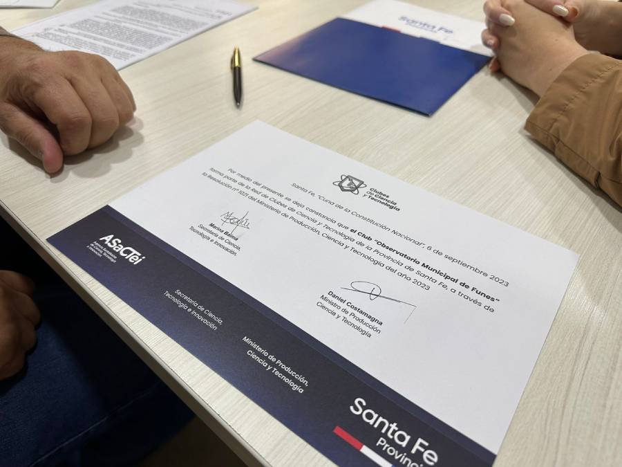 Este miércoles, el intendente de Funes Roly Santacroce recibió a Marina Baima, secretaría de Ciencia, Tecnología e Innovación de la provincia de Santa Fe, que le otorgó a la Municipalidad de Funes la resolución que establece que el Observatorio Astronómico Municipal de Funes también funcionará como un “Club de Ciencia y Tecnología Juvenil”. Se trata de un programa provincial, al cual el Observatorio se inscribió con el objetivo de seguir fomentando el acceso de las infancias y juventudes funenses a la ciencia y la tecnología, a través del aprendizaje, el juego y los desafíos.