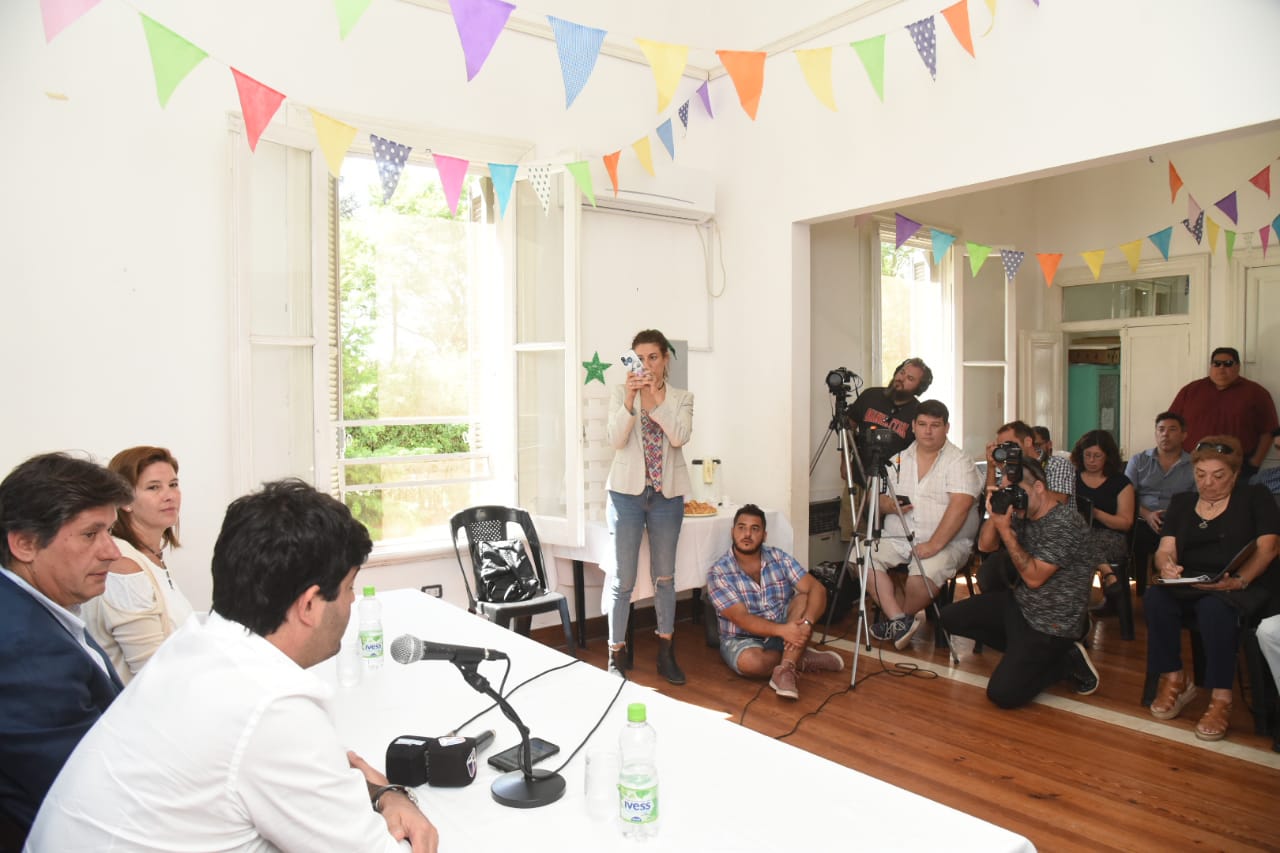En su primera conferencia de prensa en la Casa de la Cultura, el Intendente Rolvider Santacroce estuvo acompañado de la Coordinadora de Cultura Jenny Grynblat y el productor Andrés Abiad.