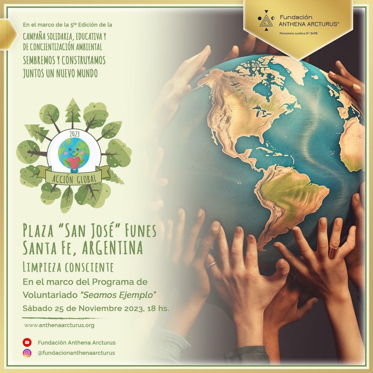 La Fundación Anthena Arcturus (Personería Jurídica No 3476) de San Carlos de Bariloche, Patagonia Argentina informó que las ciudades de Luján, Rosario y Funes fueron elegidas para ser parte de una Acción Global que se encuentra en el marco de la Campaña Solidaria, Educativa y de Concientización Ambiental "Sembremos y Construyamos Juntos un Nuevo Mundo", la cual está en proceso de ser Declarada de Interés Nacional por el Honorable Senado de la Nación Argentina, y en resonancia con la Campaña Solidaria, Educativa y de Concientización “Gratitud”.