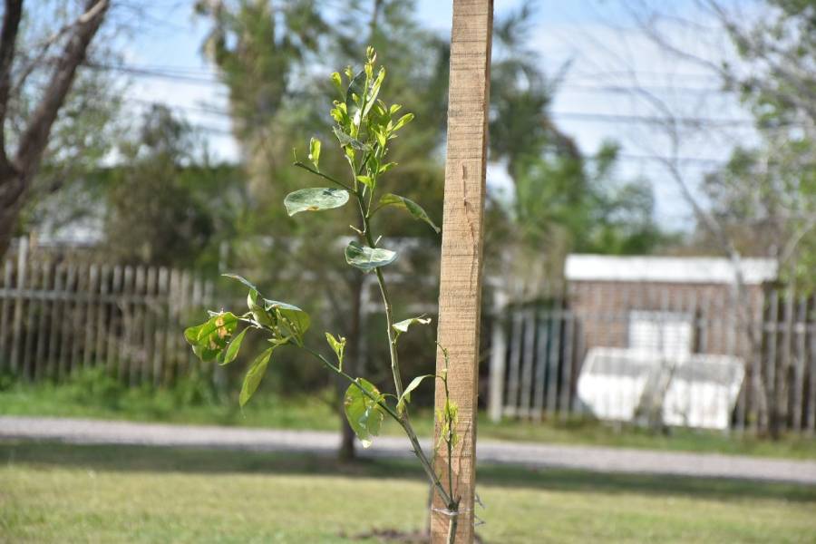 La instalación, ubicada en Araucaria y Algarrobo, cuenta con quince nuevos árboles frutales, como naranja, mandarina, durazno, nuez pecan, ciruela y quinotos.