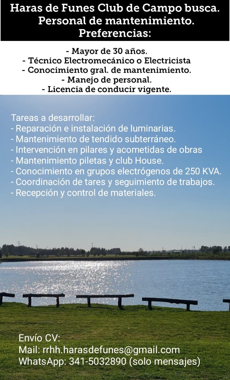 Haras de Funes Club de Campo busca personal de mantenimiento