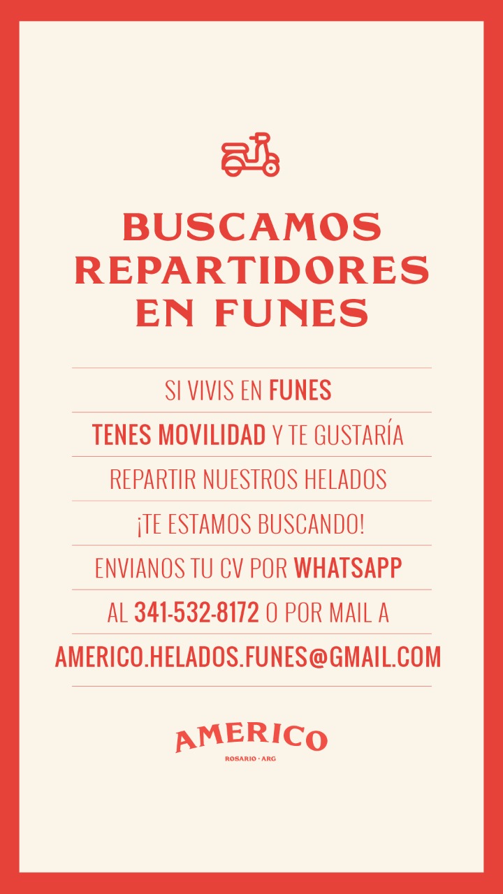 Para enviar tu CV podés comunicarte por WhatsApp al 3415328172 o por mail a través del correo americo.helados.funes@gmail.com.