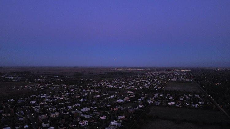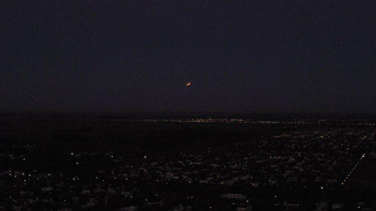 El fenómeno astronómico que se dio este miércoles bien temprano, fue captado en varias imágenes espectaculares por un vecino funense, llamado Juan Pardel, las fotos no sólo muestran el eclipse sino también una fabulosa vista panorámica de la ciudad de Funes.