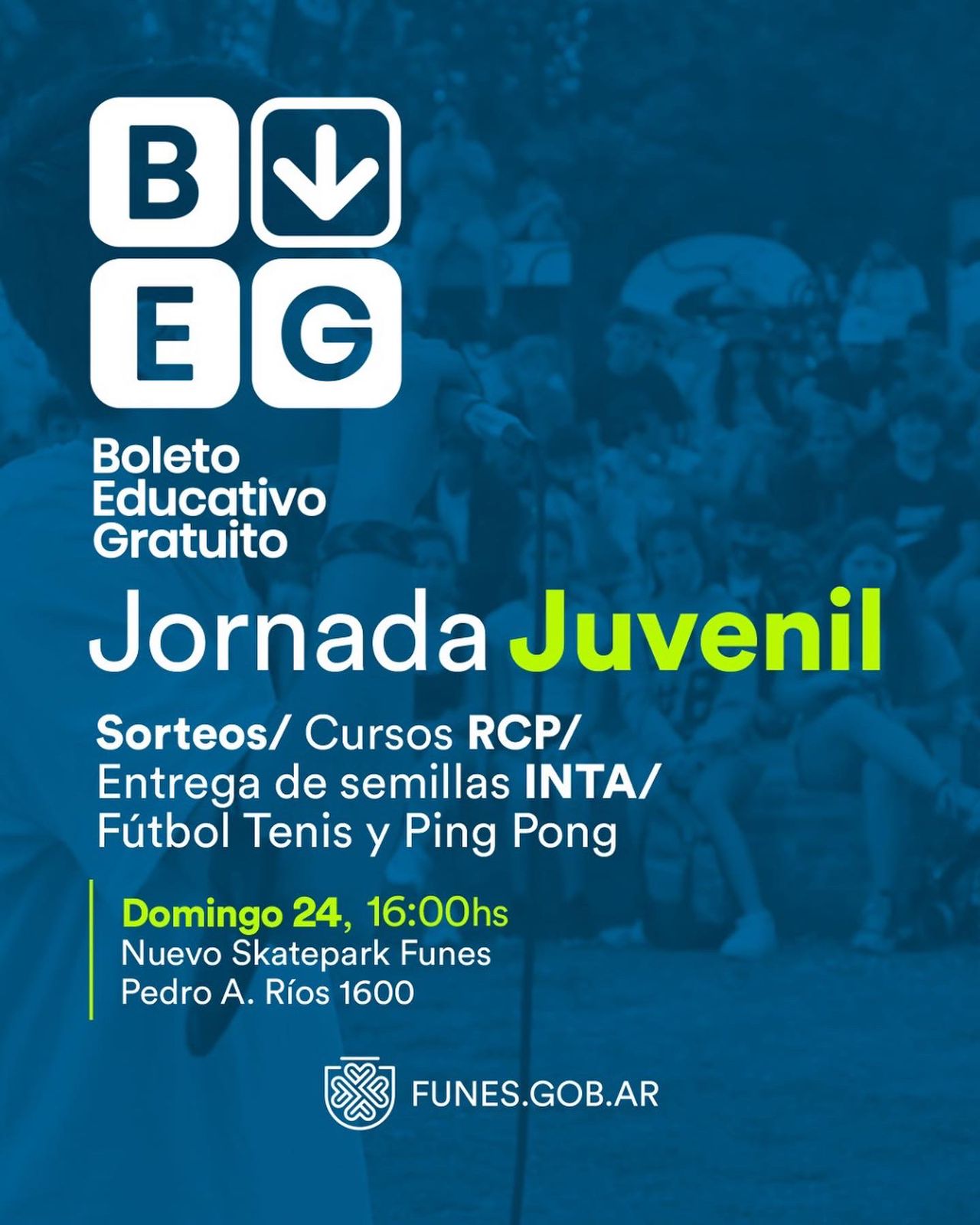 Este domingo a las 16 en el skatepark del Paseo de la Estación, se realizará una nueva Jornada Juvenil Integral coordinada por diferentes áreas de la Municipalidad de Funes.