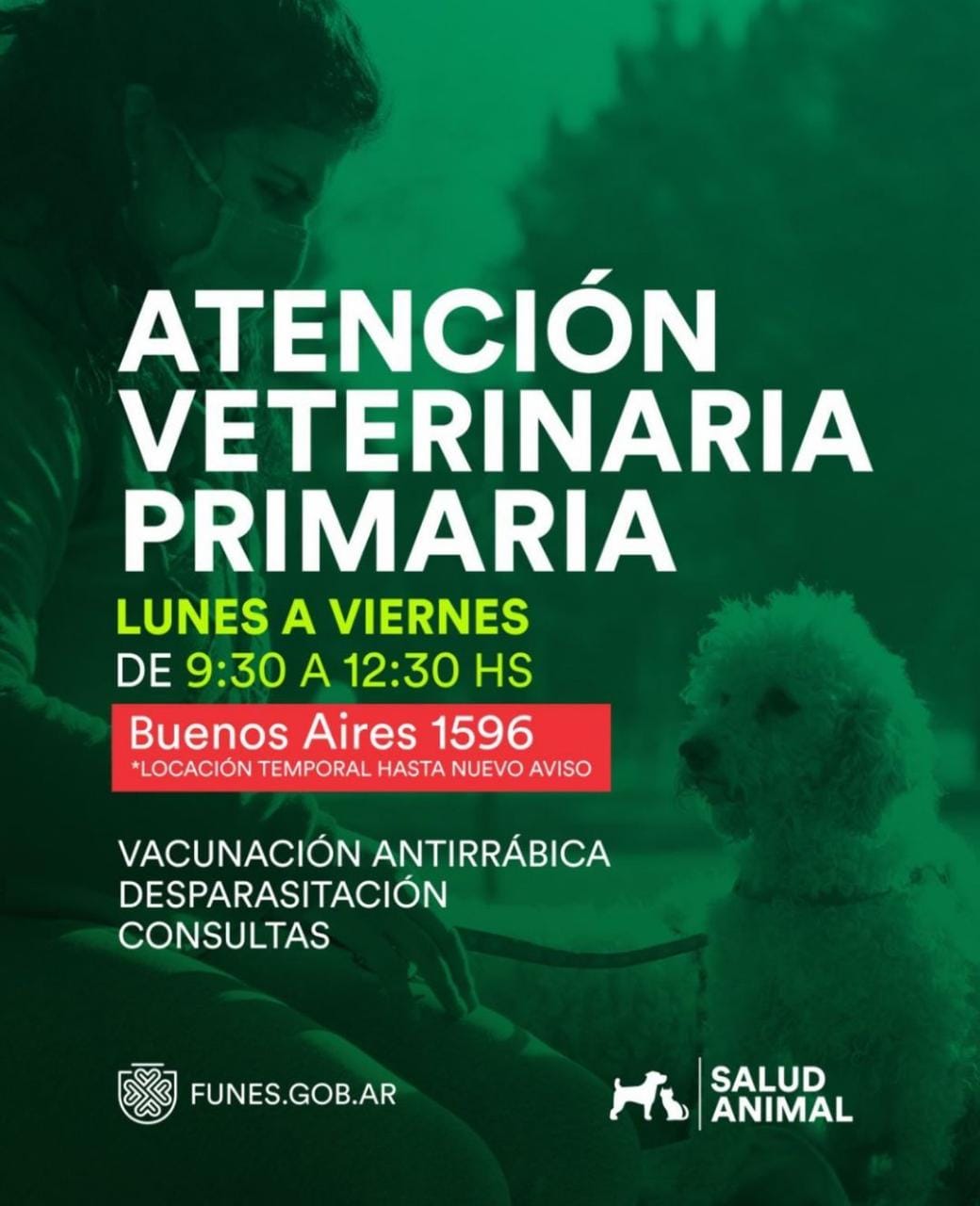 Desde la secretaría de Salud informaron que a partir de ahora la Atención Veterinaria Primaria funcionará en calle Buenos Aires 1596, como locación temporal hasta nuevo aviso, el espacio anterior se ubicaba en calle Tomás de la Torre.