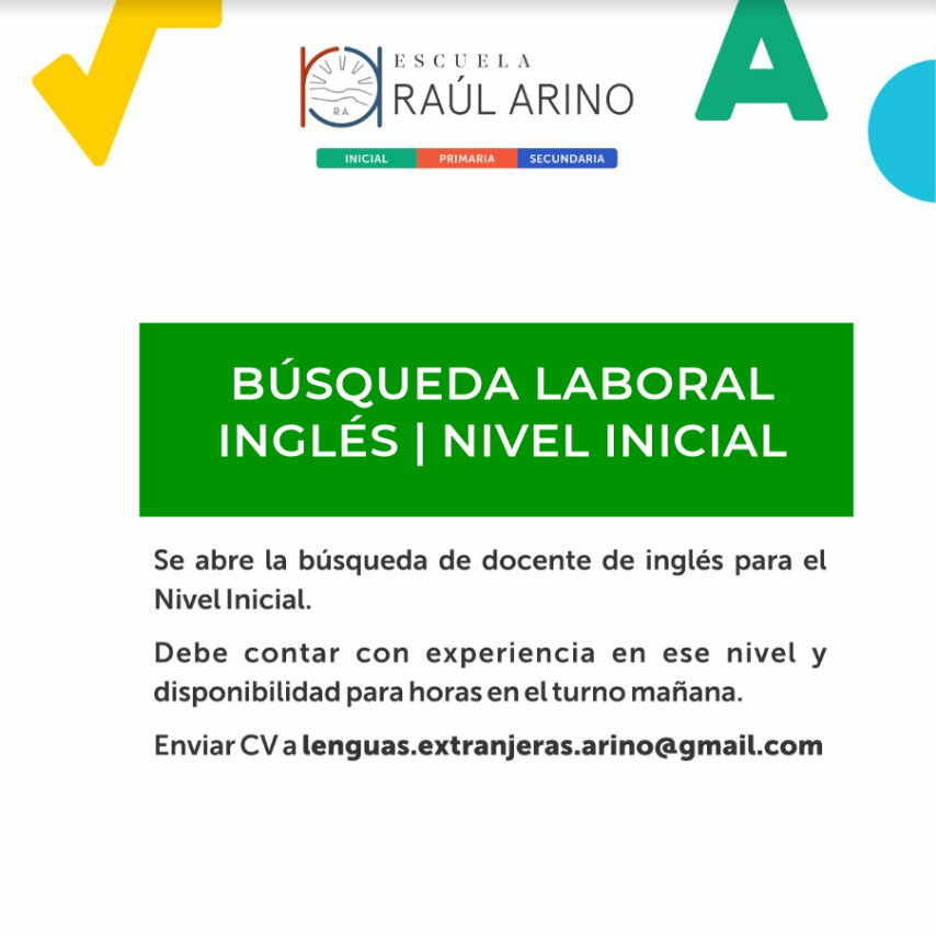 La prestigiosa institución educativa de la ciudad busca un o una docente de idioma inglés para el Nivel Inicial. Más información en la nota.